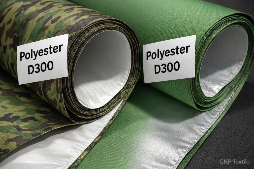 Polyester D300 adalah salah satu bahan tenda tentara yang paling banyak digunakan untuk tenda pleton TNI standar. Kode “D300” merujuk pada kepadatan anyaman kainnya, yang menentukan ketebalan dan kekuatan material.