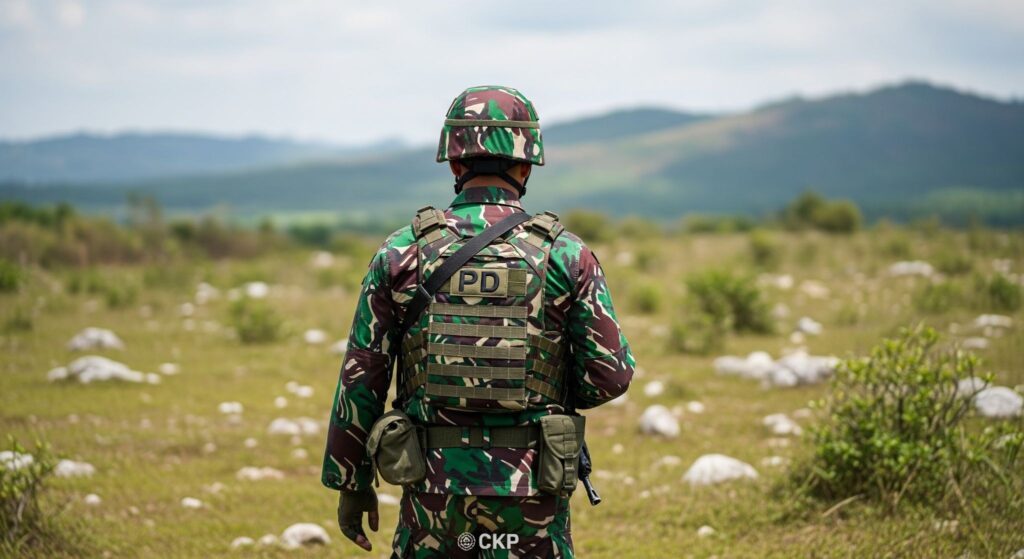 PDL adalah baju tentara yang paling dikenal masyarakat. Lorengnya bukan motif dekoratif. Pilihan warna dan polanya dihitung berdasarkan vegetasi medan operasi. Pada peringatan HUT TNI ke-80, PDL generasi baru diperkenalkan dengan warna sage green dan pola digital lebih kecil, resmi menggantikan loreng Malvinas yang sudah dipakai sejak 1982. Soal bahan, standarnya 35% polyester dicampur 65% katun. Proporsi katun yang lebih tinggi itu yang bikin prajurit tetap bisa bergerak cepat tanpa merasa seragamnya menahan.