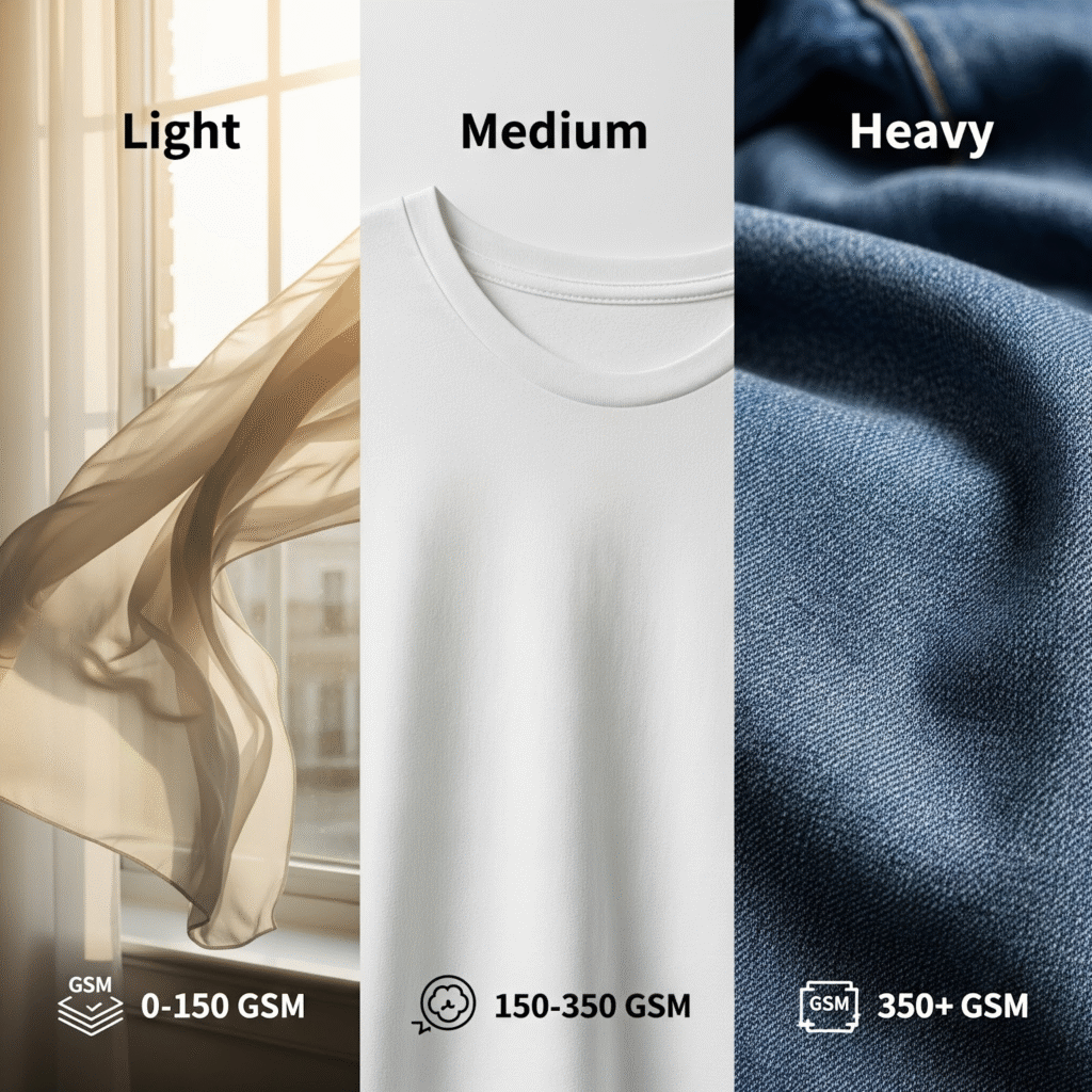 Kategori ini cocok banget untuk iklim tropis seperti Indonesia. Kain tipis dan ringan ini punya karakteristik breathable, cepat kering, dan tidak gerah saat dipakai. Gramasi rendah biasanya berkisar antara 50-150 GSM.