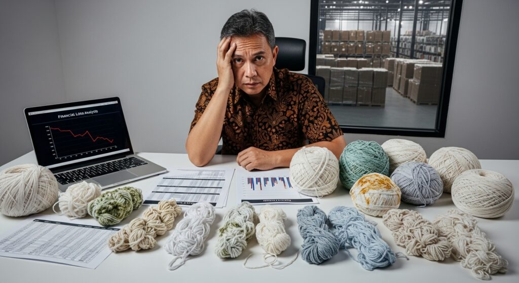 Kerugian finansial akibat kesalahan penyimpanan dapat mencapai 20-40% dari nilai inventory. Untuk bisnis dengan stok benang senilai 100 juta rupiah, kerugian bisa mencapai 40 juta rupiah. Angka ini belum termasuk opportunity cost dan reputational damage.