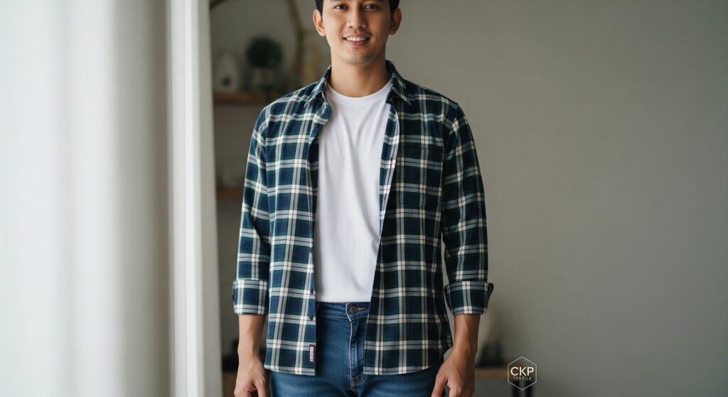 Metode berpakaian lapis ganda sejatinya merupakan solusi outfit lebaran pria serbaguna yang sangat cerdas diakali. Saat derajat cuaca melonjak drastis, Anda tinggal melucuti bagian luarnya tanpa harus berganti pakaian utuh. Anda dijamin sukses terus tampil kasual saat silaturahmi dengan kenyamanan gerak yang tetap membahagiakan diri sendiri.