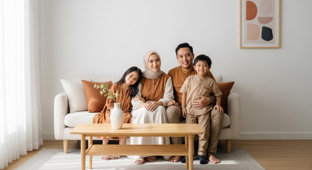 ✅ Earth tone monokrom: Seluruh keluarga dengan gradasi beige, cream, dan mocca