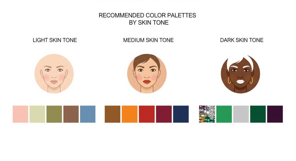 Kulit gelap: Warna cerah dan bold seperti teal blue, burgundy, dan warna kontras akan menonjolkan keindahan kulit.