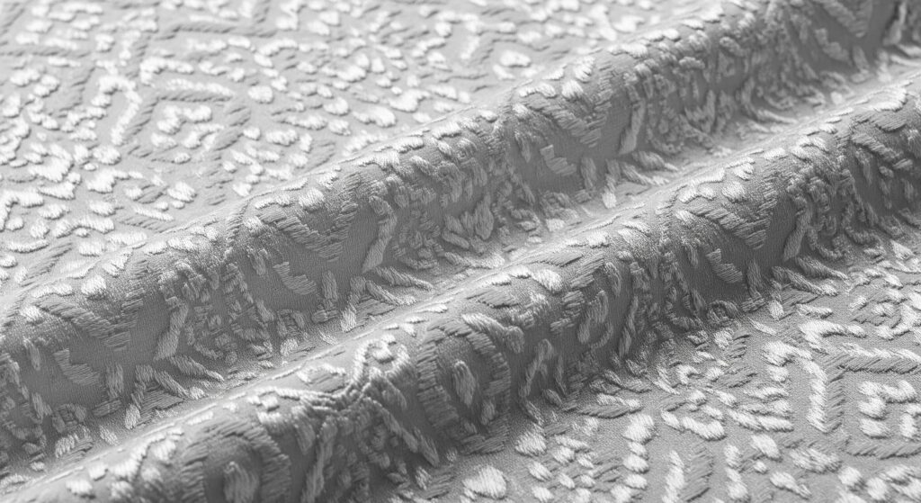 Warna metalik dalam bentuk aksen benang emas pucat, perak, atau rose gold pada brokat dan jacquard menjadi tren di Lebaran 2026. Detail kilau halus ini menambah dimensi visual tanpa membuat tampilan terlalu ramai.